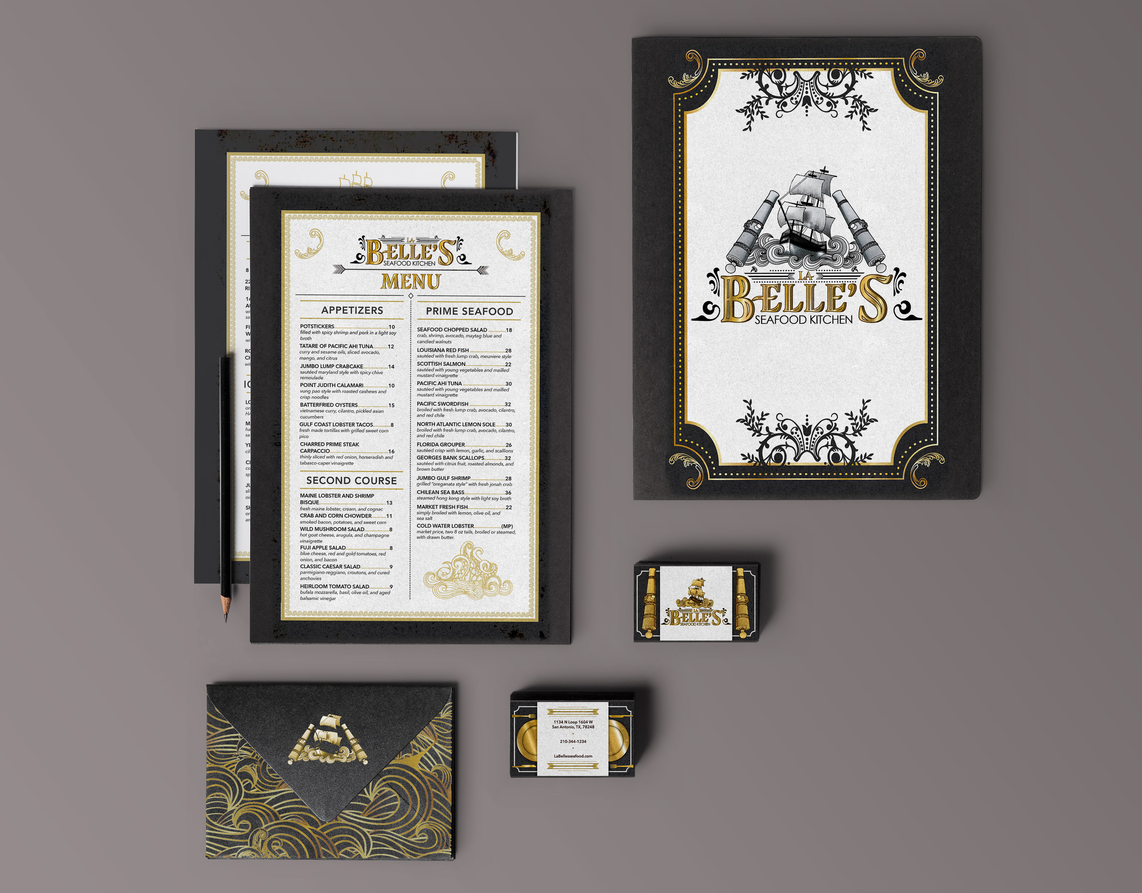 La Belle's Seafood Kitchen Menu and Logo Design